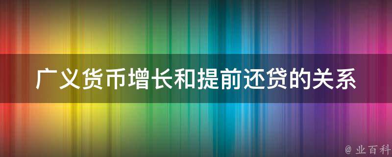 广义货币增长和提前还贷存在负相关关系。广义货币增长越快,居民存款同比增加越多,居民提前还贷明显减少,抵消居民消费支出增加,企业存款同比少增,可能与企业贷款需求不足有关。广义货币是指流通于银行体系之外的现金、企业存款、居民储蓄存款以及其他存款的总和,包括定期存款与居民在证券资金账户中的短期资金。提前还贷指借款人将自己的贷款部分向银行提出提前还款的申请,并保证以前月份没有逾期且归还当月贷款;按照银行规定日期,将贷款部分全部一次还清或部分还清。