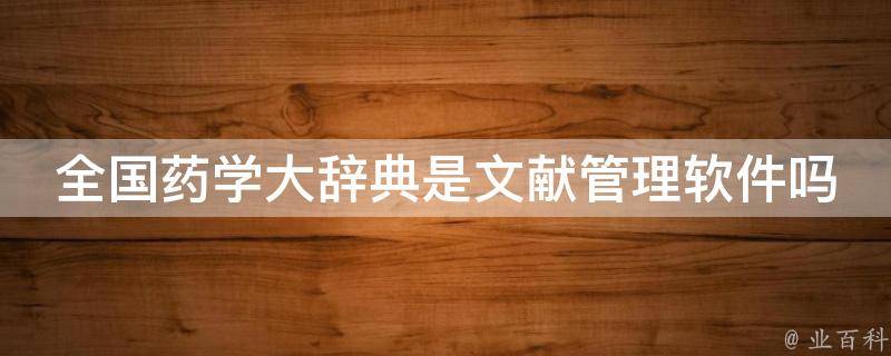 全国药学大辞典不是文献管理软件。它是一部综合性药学大型工具书,由人民卫生出版社出版,中国药学会编纂。它集录了全国数十家单位近300余名药学专家共同编写整理而成,反映了当代药学的新理论、新技术、新进展。