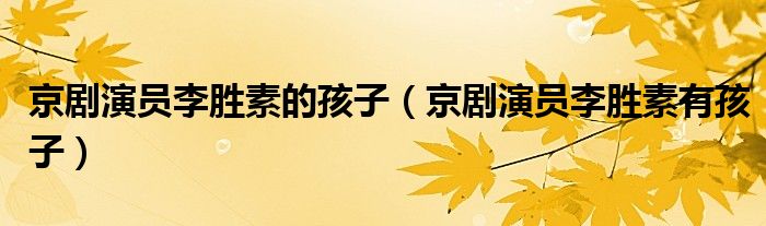 大家好,小华来为大家解答以上的问题。京剧演员李胜素的孩子,京剧演员李胜素有孩子这个很多人还不知道,现在让我们一起来看看吧!
