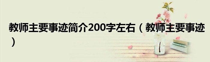 大家好,小联来为大家解答以上的问题。教师主要事迹简介200字左右,教师主要事迹这个很多人还不知道,现在让我们一起来看看吧!