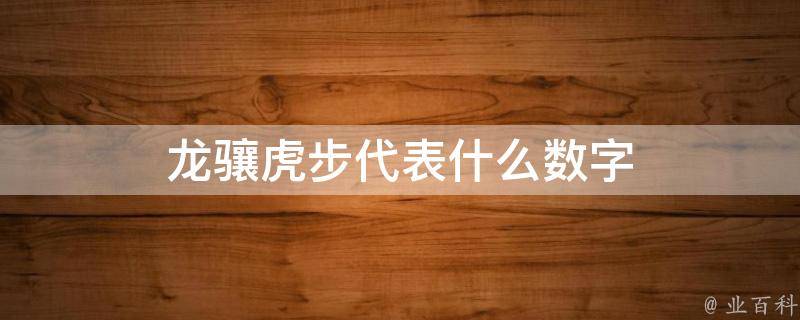 龙骧虎步代表数字8。因为龙在十二生肖中排第五位,虎在十二生肖中排第三位,5+3=8,所以,龙骧虎步代表数字8。在数字谐音中,8代表发、拜拜、不,另外,0代表圆满、完美、无尽;1代表唯一、你、起点;2代表爱、两人世界;3代表想念、生命、生活。