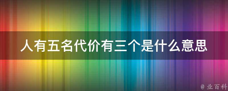 人有五名代价有三个是指在参与一项事物的过程中,会存在着五个人(或许有第六个),并且这五个人或许各自存在着三种不同的代价:一种是金钱上的付出;一种是时间上的浪费;还有一种是潜在的、看不见的精神上的代价。