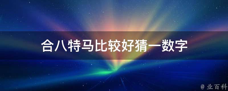 合八特马比较好猜一数字是8。合八就是两个数相加之和得八,就是1和7、2和6、3和5、4和4、8和0相加等于8,就是合八,猜一数字则是中心体8。猜谜语主要指暗射事物或文字等供人猜测的隐语,也可引申为蕴含奥秘的事物。谜语源自中国古代民间,历经数千年的演变和发展。它是古代中国劳动人民集体智慧创造的文化产物。