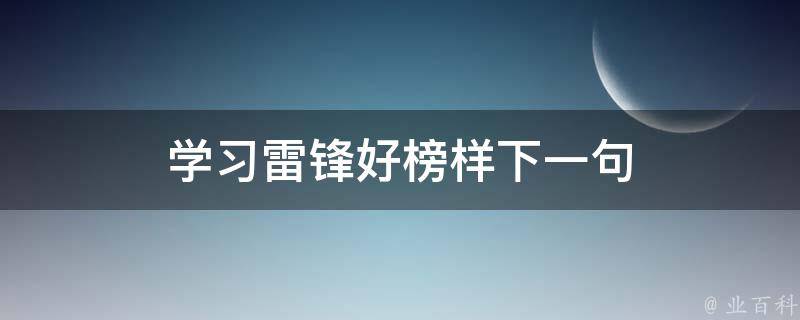 学习雷锋好榜样下一句是忠于革命忠于党。这句话是出自于《学习雷锋好榜样》这首儿童歌谣当中。歌曲是:学习雷锋好榜样,忠于革命忠于党,爱憎分明不忘本,立场坚定斗志强,立场坚定斗志强,学习雷锋好榜样,放到哪里哪里亮。