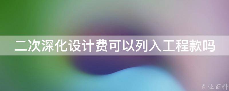 二次深化设计费可以列入工程款。深化设计费用可以作为工程建设费用,列入施工方结算造价,但具体结算方式需要双方商议确定,并在合同中明确约定。二次深化设计费是指在建筑设计、工程设计等领域,经过初步设计后,对原有设计方案进行细化、完善和优化的过程中所产生的费用。