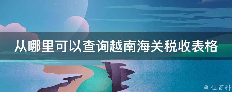 从中华人民共和国商务部网站可以查询越南海关税收表格。中华人民共和国商务部网站覆盖面比较广,全面性较高,其中包含的信息有:88国地区的进出口税费、76种出口商品报告、48国地区监管条件、55国地区税费计算。