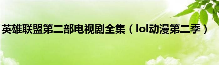 今天小饼为大家解答以下问题,关于英雄联盟第二部电视剧全集,lol动漫第二季很多人还不知道,现在让我们一起来看看吧!