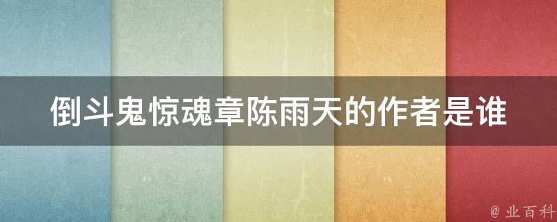 小说《倒斗鬼惊魂》的作者是章陈雨天。小说的主角也叫章陈雨天,是一个刚踏入社会不久的年轻女子,卷入了旷日持久的盗墓暗战,经过无数的生与死的考验,拨开几千年前来的重重迷雾,赫然发现在这世上最恐怖的并不是古墓里的鬼怪诅咒,而是活生生的人。