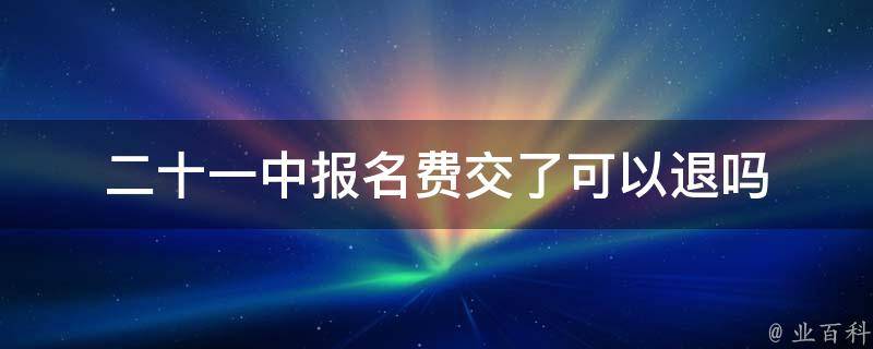 二十一中报名费交了可以退。学生缴纳学费后,如因故退学或提前结束学业,高校应根据学生实际学习时间,退回剩余的学费。具体的退费政策和流程可能因学校、地区或相关规定而异,通常需要提供一些证明文件,建议直接联系二十一中相关负责人或财务部门,了解具体的退费规定和流程。