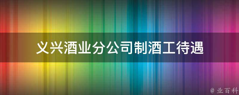 义兴酒业分公司制酒工待遇为基本工资+绩效工资+七险二金,人均税前约10万元/年,其他福利待遇按分公司相关规定执行。义兴酒业分公司是贵州茅台酒股份有限公司的分公司,成立于2020年9月24日,企业地址位于贵州省遵义市仁怀市茅台镇。