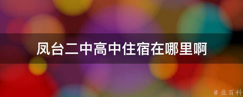 凤台二中高中住宿在学校公寓楼。凤台县第二中学位于安徽省淮南市凤台县,占地80000平方米。学校有现代化教学楼、办公楼、实验楼、学生公寓楼、音乐室、美术室、图书资料室,还有全县一流400米标准体育运动场、足球场、篮球场。