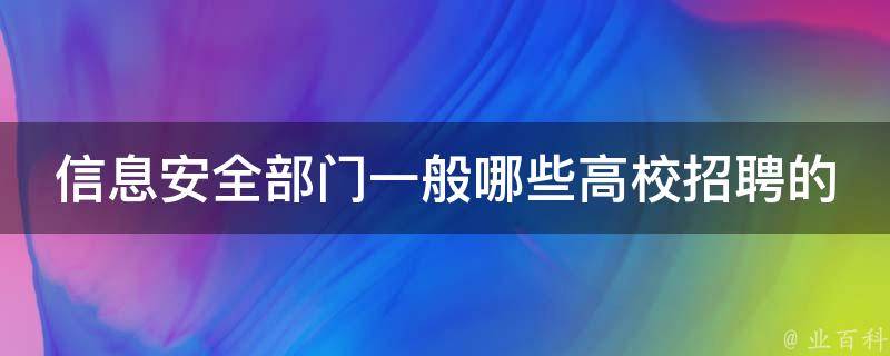 信息安全部门一般哪些高校招聘的