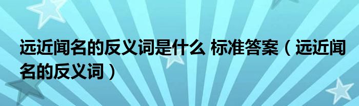 大家好,我是小科,我来为大家解答以上问题。远近闻名的反义词是什么 标准答案,远近闻名的反义词很多人还不知道,现在让我们一起来看看吧!