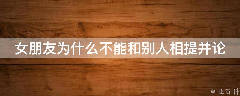 女朋友不能和别人相提并论是因为女朋友对自己的价值和独特性有一定的自信,希望被独立看待,而不是被与他人进行比较,更倾向于保持自己的独立性,注重个人的特点和个体差异,不愿意被泛泛而谈地与他人进行比较或划等号。