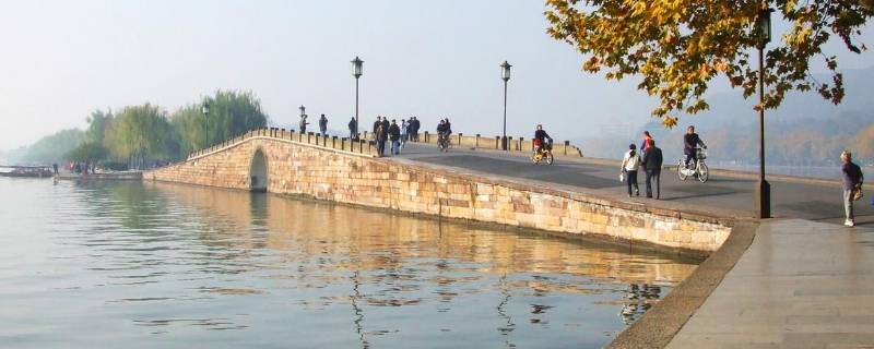 其名由来,众说纷纭,一说孤山之路到此而断,故名;一说段家桥简称段桥,谐音为断桥;一说古石桥上建有亭,冬日雪霁,桥阳面冰雪消融,桥阴面仍然玉砌银铺,从葛岭远眺,桥与堤断之感,得名“断桥残雪”。传说白娘子与许仙断桥相会,确为断桥景物增添了浪漫色彩。也有人说,南宋王朝偏安一隅,多情的画家取残山剩水之意,于是拟出了桥名和景名,后一种说法似更为可取。