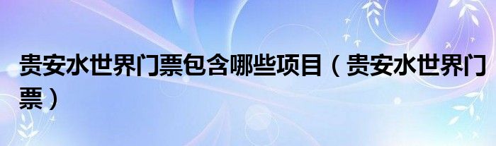 贵安水世界门票包含哪些项目(贵安水世界门票)