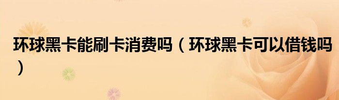 环球黑卡能刷卡消费吗(环球黑卡可以借钱吗)