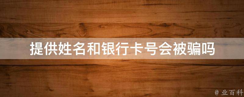 提供姓名和银行卡号可能会被骗。如果提供姓名和银行卡号的人是银行内部的人,那么对方可以通过你的账号查询到你的余额,或者是你的历史记录。如果提供姓名和银行卡号的人是诈骗人员,那么对方可能拿你的账号在网上开通电子银行,故意锁密码等。