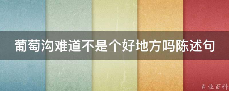 葡萄沟难道不是个好地方吗,改成陈述句是:葡萄沟是个好地方。问句改陈述句,要将疑问句中的肯定词改为否定词,或将否定词改为肯定词;将反疑问句中的疑问语气词(怎、怎么、难道等)去掉;将句末的疑问助词(呢、吗等)去掉,问号改为句号。