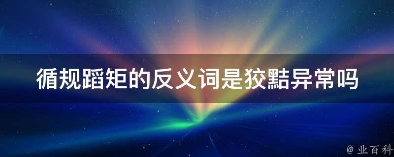 循规蹈矩的反义词不是狡黠异常。循规蹈矩的反义词有:肆无忌惮、为非作歹、轻举妄动、随心所欲、无法无天、别开生面、无所不为、放浪形骸、为所欲为、图谋不轨、离经叛道、偷香窃玉、作奸犯科、惹是生非等。