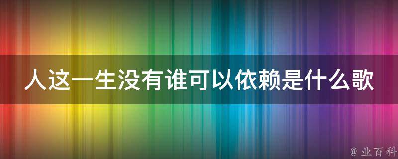 人这一生没有谁可以依赖是歌曲《人生没谁可以依赖》,这首歌曲由歌手倪红演唱,发行于2023年11月13日。歌词节选:人这一生没谁可以依赖,也别指望老天给你安排,自古锦上添花常有人在,雪中送炭又有几人会来。