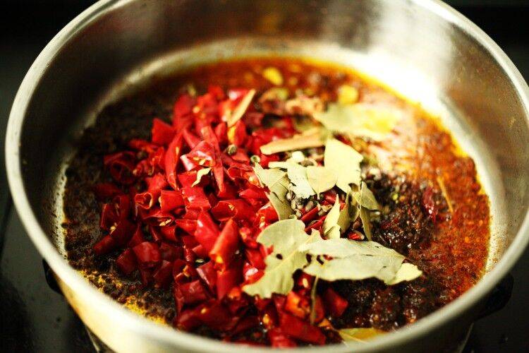 2、加入香料、辣椒、花椒。