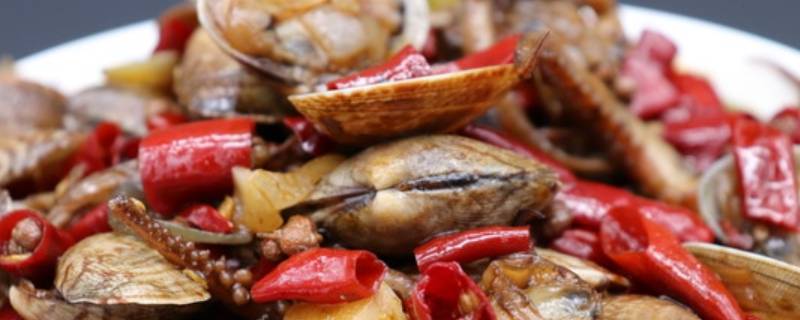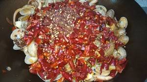 1、准备材料:花甲1000克、鱿鱼300克、姜5片、蒜5瓣、葱半根、洋葱半个、鸡精15克、盐1小勺、黄瓜半根、芹菜两根、啤酒100毫升、豆瓣20克、蚝油30克、红花椒30克、辣椒段100克。