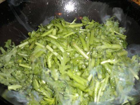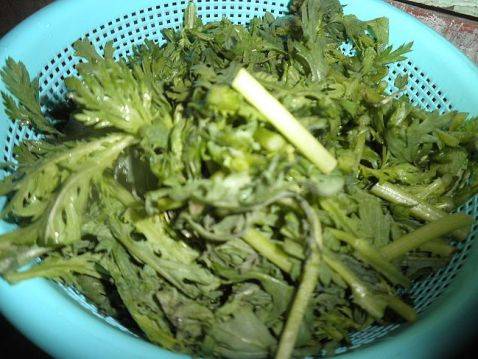 用料:蒿子杆、食盐2g、葱5g、调和油10ml、虾皮。