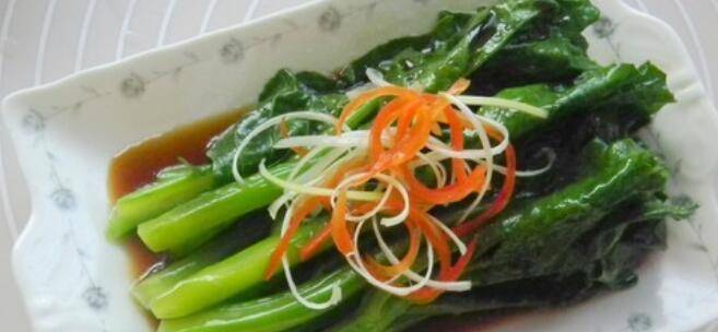用料:芥蓝250克、蚝油1汤匙、白糖1/2茶匙、酱油1汤匙、葱白少许、红椒少许、水适量、植物油2茶匙、食盐1/2茶匙。