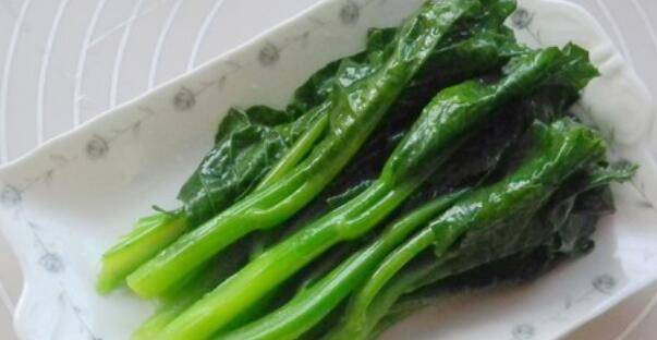 5.将处理好的芥蓝放入烫至刚熟即可捞起放入冰凉水中浸泡冷却后装盘。