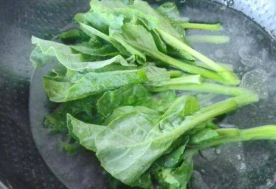 4.烧开水,水里加入1茶匙植物油、食盐和白糖,加入白糖就是芥蓝不涩的窍门。
