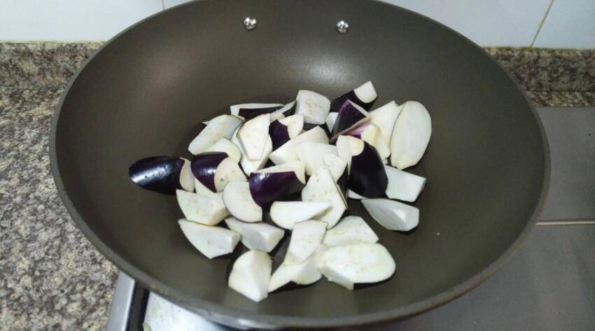 2、茄子洗净切滚刀块,小番茄对半切开。