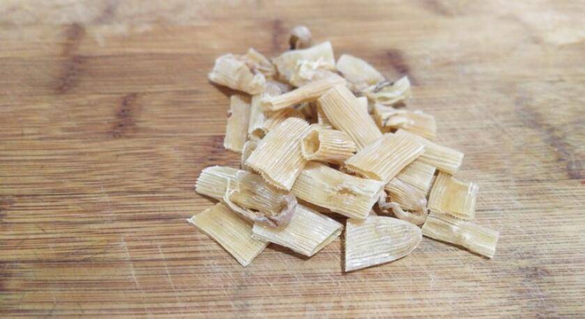 6、锅内热油,放入沙虫干小火慢慢翻炒至深黄色。