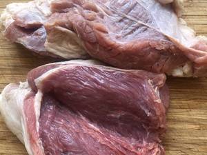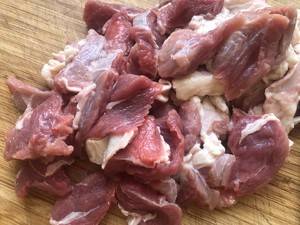 2、牛肉用清水泡两个小时去除血水,切成小块。