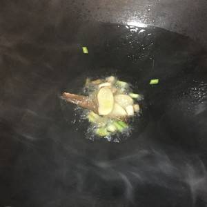 4、锅中放入油、姜片、葱白,直到出香味。
