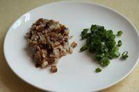 5、腊肉和葱切成粒。