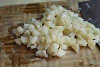 4、取适量浸泡后的木薯,沥干水,切成粒。
