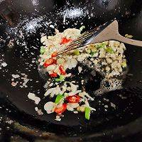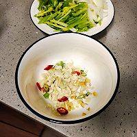 7、继续开火,放入切好的葱、姜、蒜、小米辣爆香,再将配菜下锅翻炒至断生。