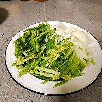 4、将洋葱、芹菜、青椒等配菜切好备用。