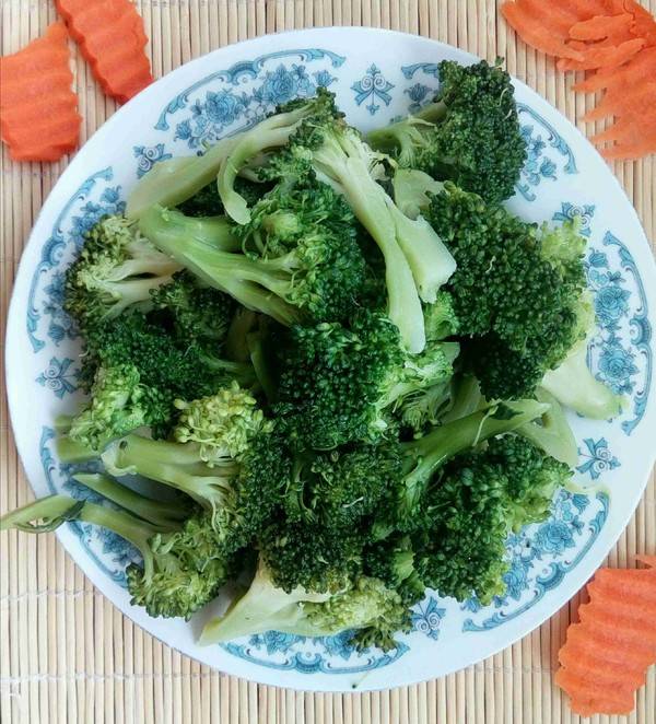 1、西兰花掰开洗干净,开水大火焯七成熟,捞出后用冷水冲凉。