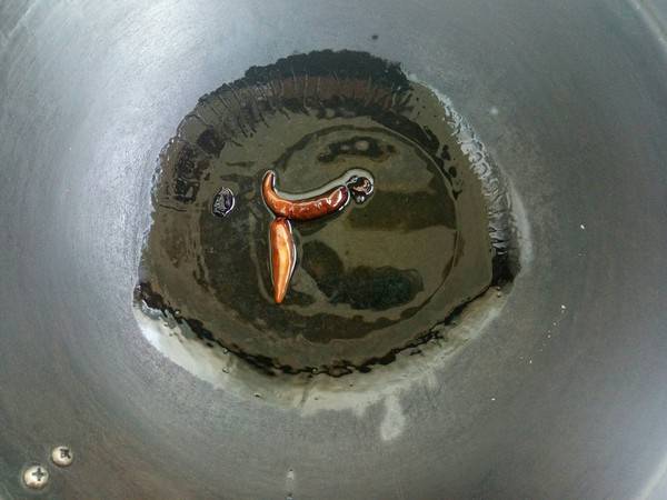 4、起锅,加入油和八角及辣椒小火煸炒出香味。