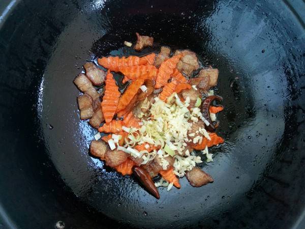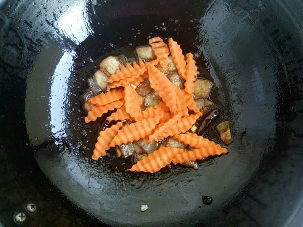 7、加入红萝卜翻炒匀。