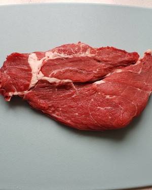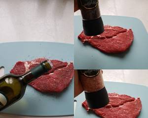 2、牛排均匀抹上盐、胡椒和橄榄油,放进盘子,盖上保鲜膜,腌制1个小时。