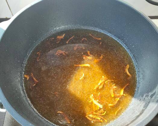 2、起锅热油,下姜丝炸香。