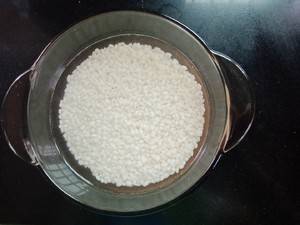 2、先取小半碗的糯米,在冷水中浸泡2小时左右,沥干水分。