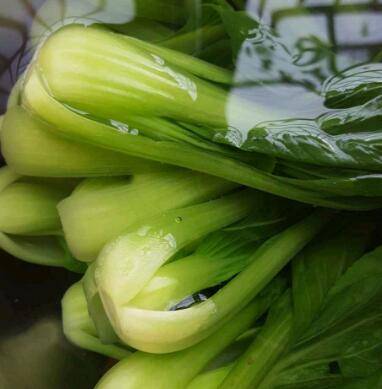 1、青菜洗净焯水,浸凉开水,摆盘。