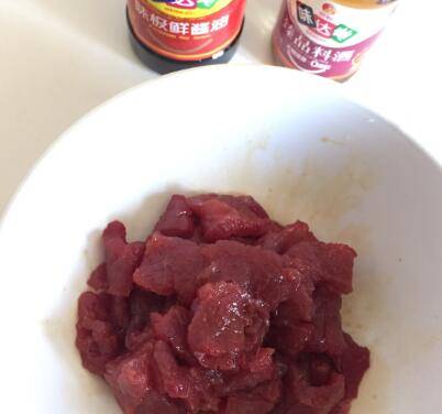油烧热后下腌制好的牛肉炒至表面发白马上盛出。