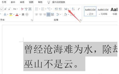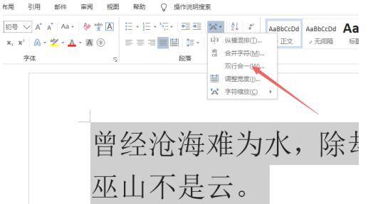 1、打开一个word文档,之后选中打算双行合一的文字。
