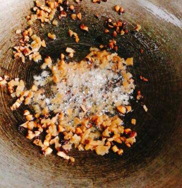 热油中火炒下香菇粒,再改大火炸下萝卜干粒。