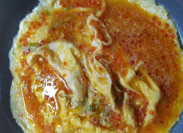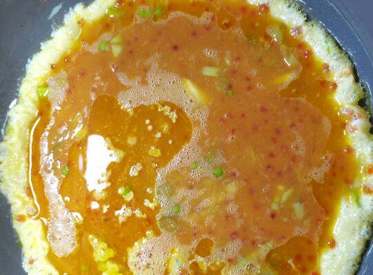 3、鱼籽倒入鸡蛋液中轻轻搅拌均匀。